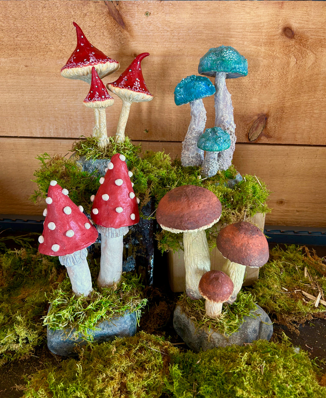 In this fun workshop you'll be making a set of three mushrooms on a cobble stone.